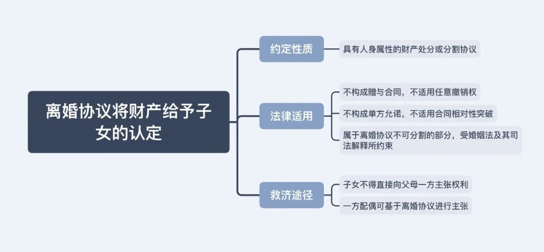 但在双方解除婚姻关系后,一方反悔未按照离婚协议约定进行过户,则其能否主张行使《合同法》中的赠与撤销权,撤销将财产给予子女的约定?该约定的效力为何?未成年子女的权益又该如何保护?